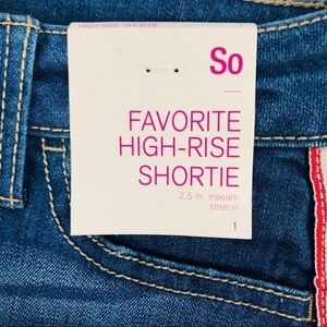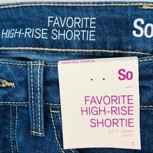 NWT SO by Kohl’s Women’s Blue Jean Shorts Sz 1 High-Rise Shortie Distressed