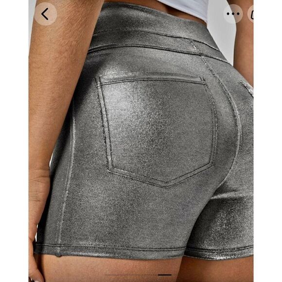 NWT SOFTLYZERO FAUX LEATHER HIGH WAISTED METALLIC FOIL PRINT STRETCHY BIKE SHORT