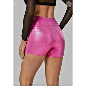 NWT SOFTLYZERO FAUX LEATHER HIGH WAISTED METALLIC FOIL PRINT STRETCHY CASUAL BIK