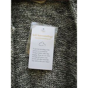 Details:Soft SurroundingsSize: S/MColor: Gray/BlackRaglan sleevesRibbed trimCocoon shapeSingle wood button closureOversized fitCotton/polyester