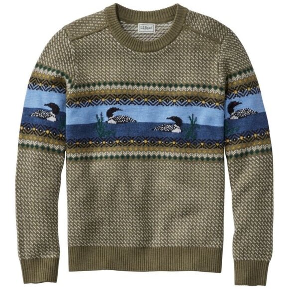NWT *SOLD OUT* Men's L.L. Bean Merino Wool Sweater LOONS Lake Maine Bird