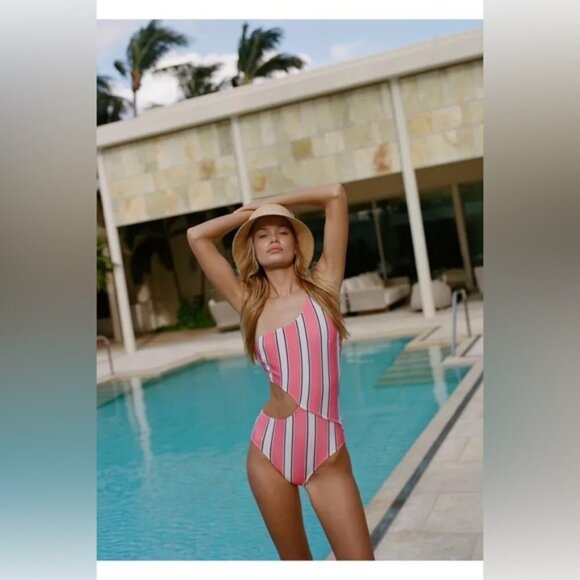 NWT SOLID & STRIPED S the Claudia cosmic stripe cut out bathing suit