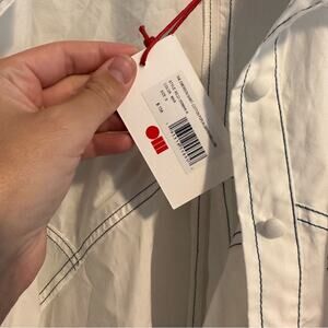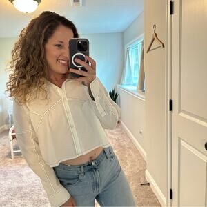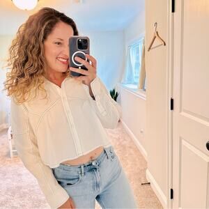I adore this super pretty brand new with tags Solid & Striped white blue accent embroidered collared cropped top/button down blouse