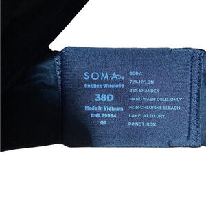 NWT SOMA Enbliss Wireless Black Bra Style 570222679 Size 38D