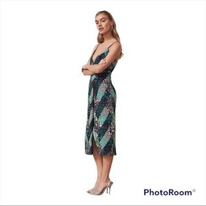 NEW with tags SONG OF STYLE x REVOLVE Blue Green Sequin Echo Midi Wrap Dress