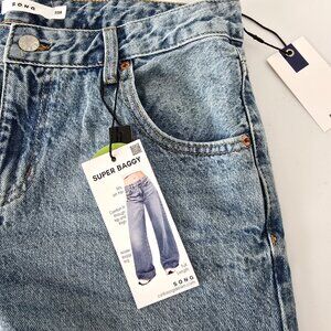 Streetwear NWT S.O.N.G. Wide-Leg Jeans Size Junior 7/28 Light Wash, Y2K Baggy. Pair with chunky sneakers — concerts, dates