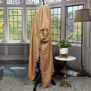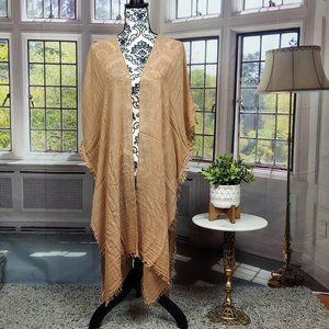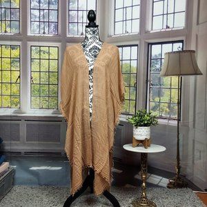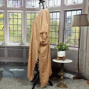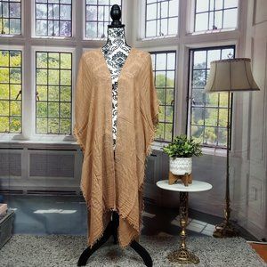 NWT Sonoma Textured Gauze Cinched Topper in Gold (similar to a dark tan). Sonoma Textured Gauze Cinched Topper is the perfect compliment to any outfit. Soft and Lightweight with Short Sleeve Arm Openings - a Perfect Accessory for your Summer Wardrobe!!! Features a Ruana Silhouette. 42"L (longest point), 35"L (shortest point), & 32"W (laying flat) - One size fits most. Made of 72% Polyester, 15% Rayon, 10% Nylon, 3% Wool – Hand Wash. ***Also available in Ivory - see separate listing*** / Note - the 2nd pic in Blue is to show the fit from behind. ***Remember to Bundle & Save***