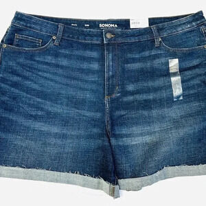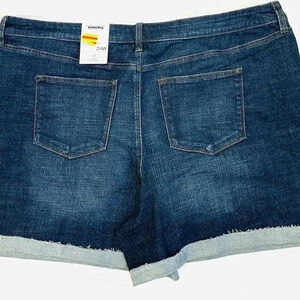 NWT SONOMA Women High Rise Blue Rolled Cuff Distressed Denim Shorts Plus 24W