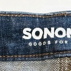 NWT SONOMA Women High Rise Blue Rolled Cuff Distressed Denim Mom Shorts