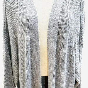 NWT SONOMA Women Long Sleeve Open Front Knit Gray Long Cardigan Sweater