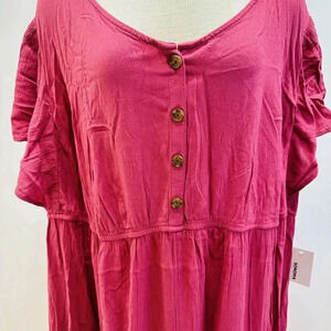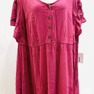 NWT SONOMA Women Short Sleeve Pullover Pink Elastic Waist V-Neck Dress Size 3X