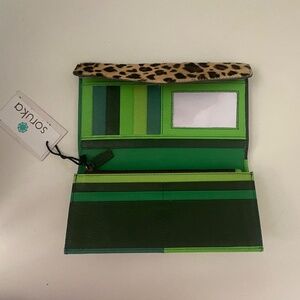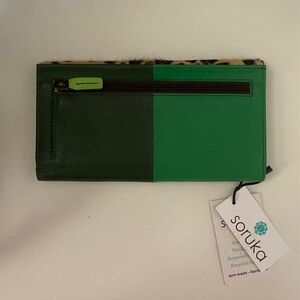 NWT SORUKA HANDCRAFTED LEOPARD GREEN MULTICOLOR RECYCLED LEATHER WALLET