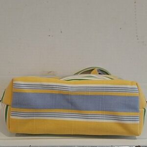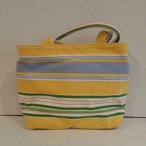 A single compartment purse with a zipper closure. New with tag. There is a slide pocket on the front of the bag.