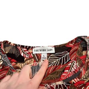 NWT SOUTHERN LADY Red Leaf Print Stretch Comfort Knee Length Dress Size L