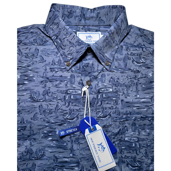 NWT SOUTHERN TIDE Cliff Intercoastal Performance Shirt Blue Size S MSRP $125