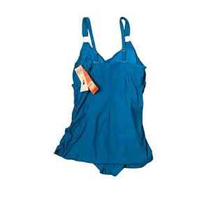 NWT SPANX 1 Piece Swimsuit Bayside Blue Draped Swim Dress - Size 18