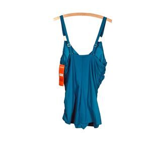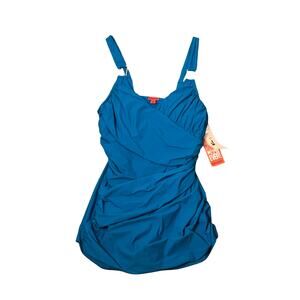 NWT SPANX 1 Piece Swimsuit Bayside Blue Draped Swim Dress - Size 18