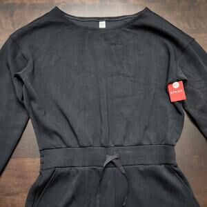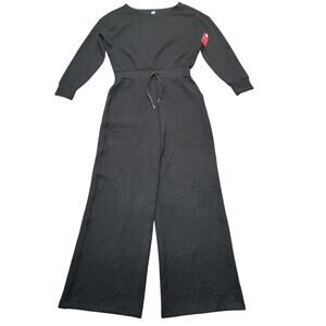 New with tags SPANX AirEssentials Off The Shoulder Wide Leg Jumpsuit in Very Black. Ultra soft material with drawstring waist.