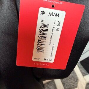 NWT SPANX Black Satin Adjustable V Neck Racer Back Cami, Size Medium