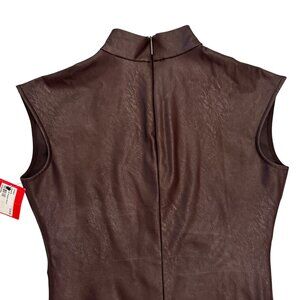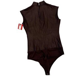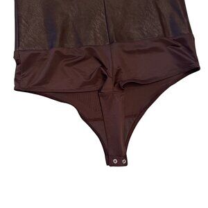 NWT SPANX Leather Like Mockneck Bodysuit Top in Chocolate Brown Size Small