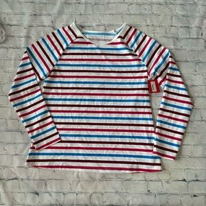 New with tag SPANX Medium Swim Rashguard Ocean Stripe Hibiscus Patriotic Long Sleeve Top size L