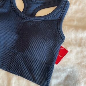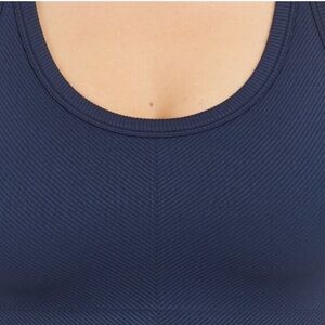 NWT SPANX Seamless Sculpt Chevron Ribbed Longline Sports Bra Women’s XS Navy