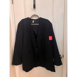 NWT SPANX The Perfect Collarless Oversized Blazer Navy/Grey Pinstripe 2X Preppy