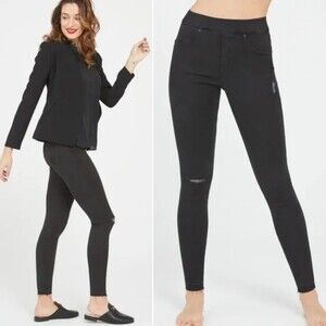 NWT SPANX Vintage Black Distressed Ankle Skinny Pull On Stretch Jeggings Size 3X