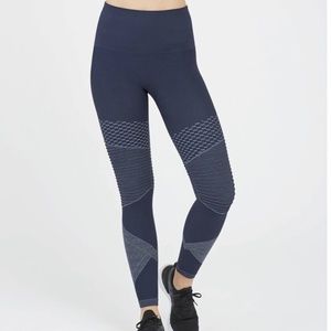 NWT SPANX XS Look at Me Now Seamless Moto Leggings Indigo Blue Shaping Stretch