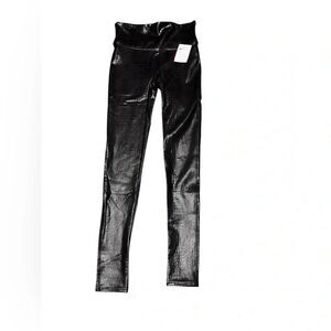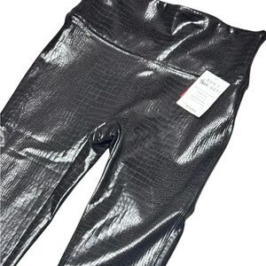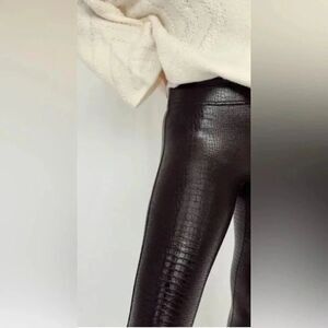 NWT SPANX brown black Crocodile Faux shape wear Leather Leggings size small
