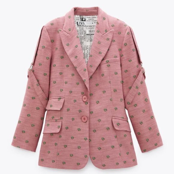 Brand New Zara Embroidered Blazer CFDA/Vogue in Pink, M