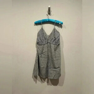 NWT / vertical blue and white stripped/ elastic waist / adorable tie back detail / rayon (70) linen (30) blend/