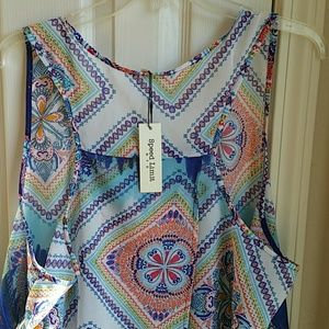 NWT SPEED LIMIT MPH LIGHTWEIGHT BLUE PRINT TANK TOP. LAYERED BACK, PERFECT FOR SUMMER!! 100% polyester. SZ 3X.