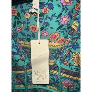 NWT SPELL DESIGNS FOLKTOWN TURQUOISE BLOUSE XS