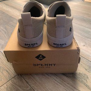 NWT SPERRY TOP SIDER WOMEN'S CREST TWIN GORE GREY LINEN CANVAS SNEAKER 5.5