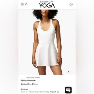 Beautiful pink Lexi Active Dress. Features a sleek design. Ideal for workouts or casual wear. A short-length active dress with a compressive fitting interior bodysuit, designed with a double-layer bra, flare skirt, and twist-back straps