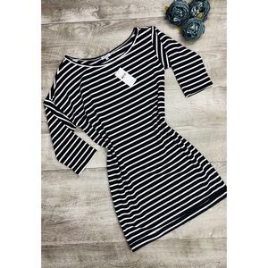 NWT SPLENDID OFF SHOULDER BLACK/WHITE STRIPE DRESS