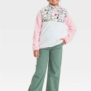 NWT- SQUISHMELLOWS- Girls Pink and White Fleece Pullover-1/4 zip- Size XS (4-5)