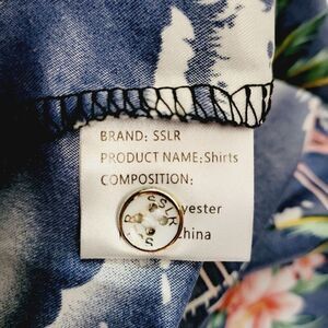 NWT SSLR Men's Hawaiian Shirt Aloha Flamingos Palms Tropical Blue Pink Size L