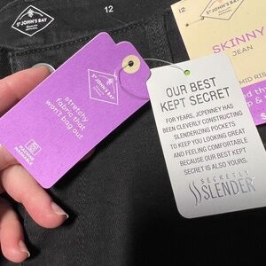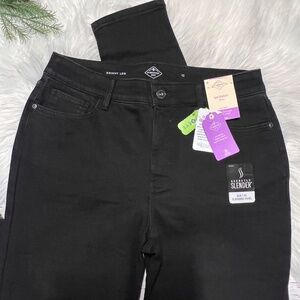 Brand new with tags! Always my favorite kind to find. :) They are jet black in color. Skinny leg. Secretly Slender Built-In Slimming Panel. Size 12. Approx measurements in inches when laid flat: waist 15.5 across, inseam/length 30, front rise 11. At the time of posting, I have the exact same pair in a size 14 as well