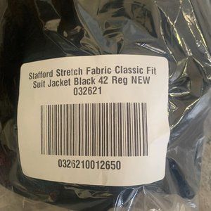 NWT (NEW IN BAG) STAFFORD STRETCH FABRIC CLASSIC FIT SUIT JACKET BLACK SIZE 42 REGULAR.