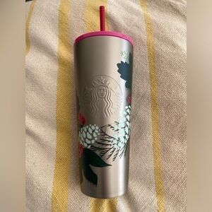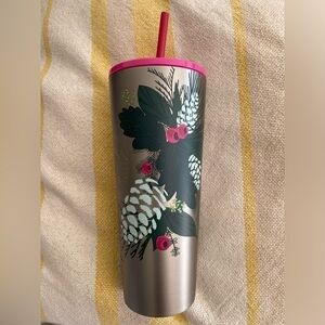 NWT STARBUCKS STAINLESS STEEL CHRISTMAS PINE LEAF MOTIF TUMBLER
