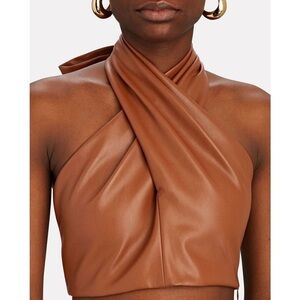 NWT STAUD 70s Vegan Leather Keyhole Twist Front Open Back Halter Tie Crop Top 10