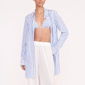 NWT STAUD Alita Tunic Shirt Dress Medium Blue White Stripe Causal