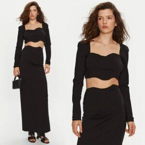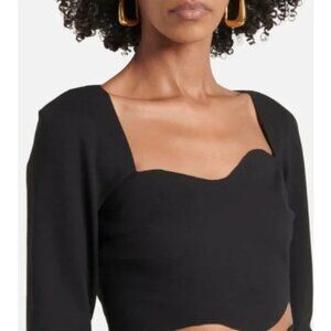 NWT STAUD Corde Top in Black Scalloped Cropped Ponte Stretch Size S