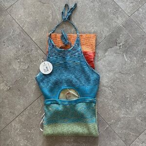 NWT STAUD Edesia Midi Dress size M Multicolored Stretch Ribbed Cutout Sundress