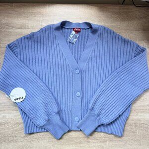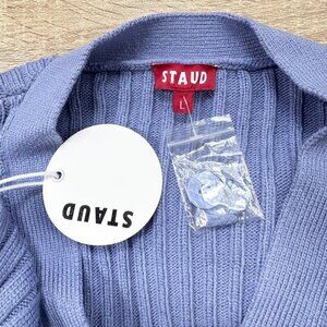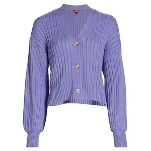 NWT STAUD Eloise Cardi Sweater Knit Ribbed Long Sleeve Cardigan Purple Large