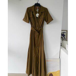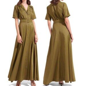 NWT STAUD Millie Belted Maxi Shirtdress Sz2/4 Caper Green