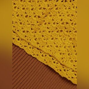 Rib-knit midi skirt with a sleek pencil silhouette adorned with contrasting crochet inset at the hem.