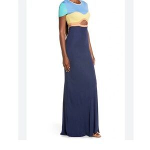 NWT STAUD Piera Dress Size Small Color Blue Green Yellow